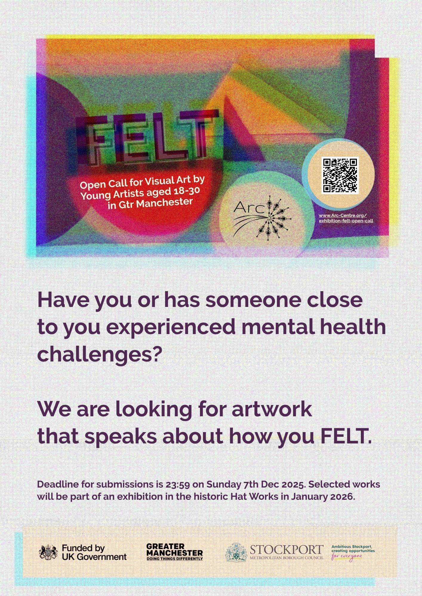 To celebrate ARC's 30th birthday they're inviting young visual artists aged 18–30 who live, study or work in Greater Manchester, to respond creatively to the theme ‘FELT’.
