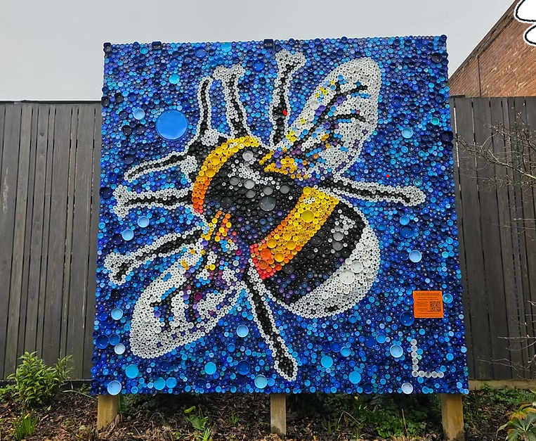 The World's First Recycled Plastic Mural Trail, a community project by Plastic Shed based in Stockport. The trail features 10 murals made from over 2,000 recycled plastic bottle lids, created with the help of local children and the community.