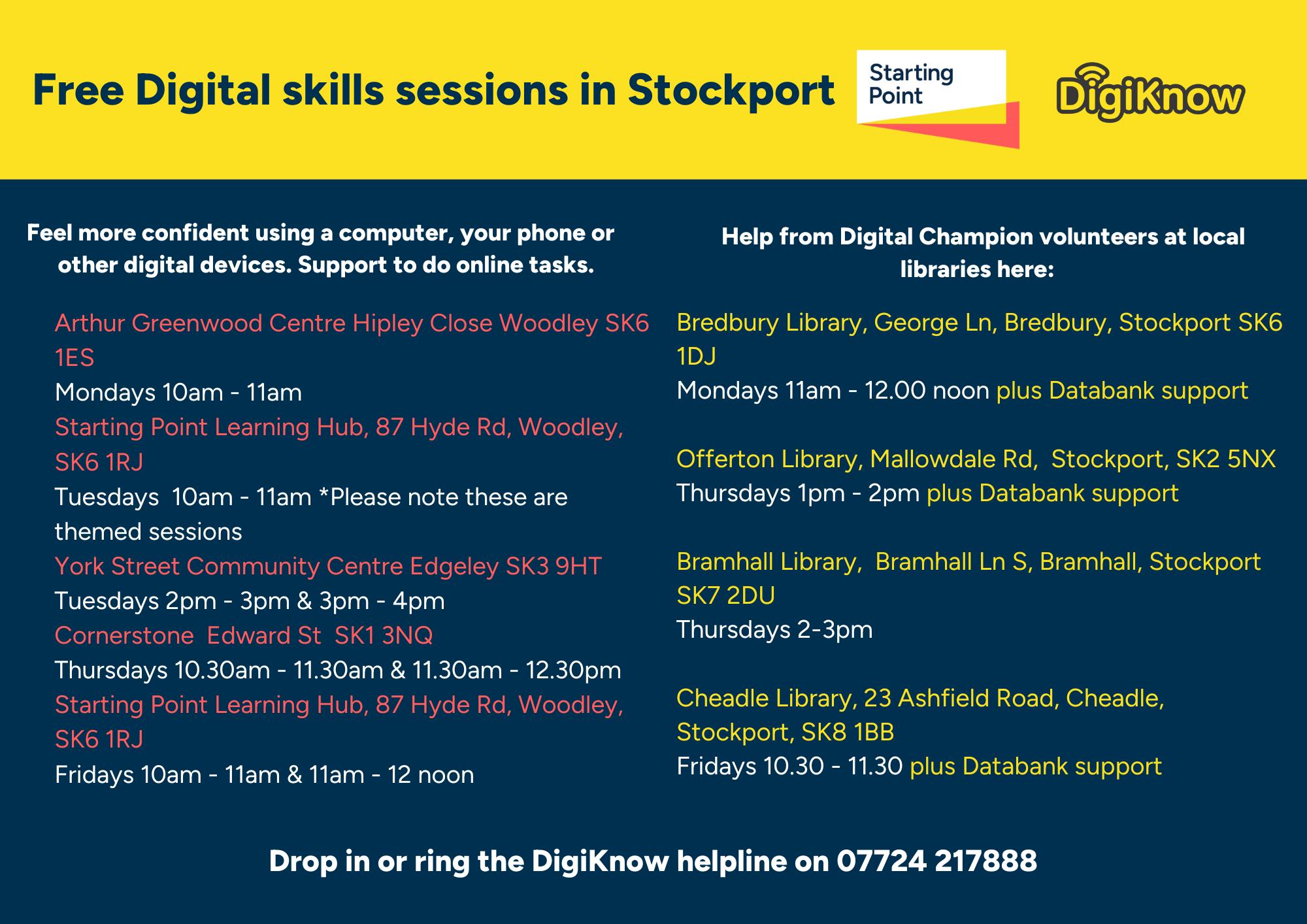 - START offer advice and support for Stockport residents. The team will talk to you on a one to one basis and guide you to the support that’s best for you. Call 0161 474 3141, email start@stockport.gov.uk, or fill in the online form.